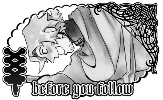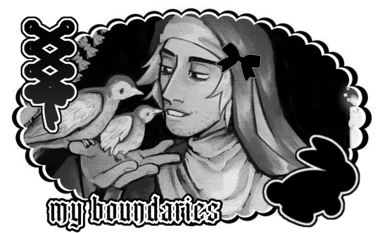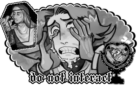 absolutely not flirt to me in a romantical way or confess your love to me, vent to me out of sudden, say the f word even if you can reclaim it, spam things on my dm, ask me about personal stuff, copy my work/oc's, etc.